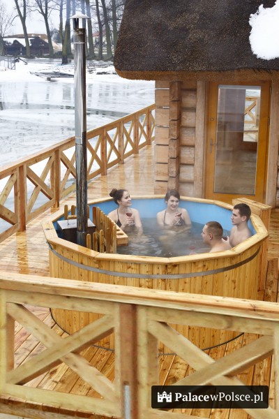 SPA w Dworze Droblin inspirowane jest naturą, począwszy od drewnianego budynku usytuowanego na wodzie krytego strzechą, po wnętrze i gabinety łączące wiejski styl z luksusem nowoczesności.